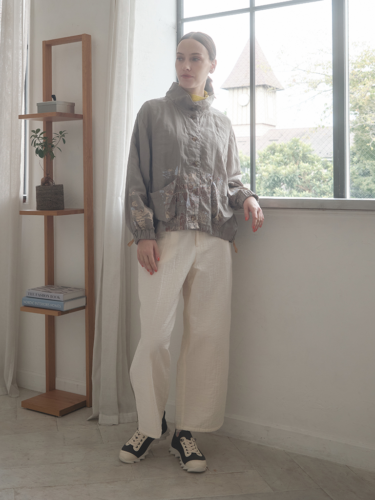 ポケットのデザインや丸みを持たせたディテールが優しいシルエットを作っています。