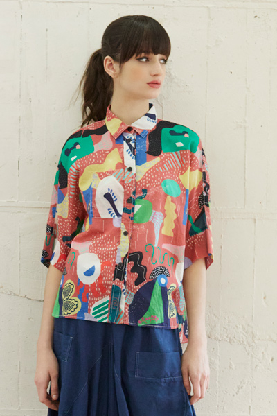 目、鼻、足など、体のパーツをモチーフにしたプリントシャツは、ユーモアがあり楽しさ満点。さらりと纏うだけで、ハッピーで洒落たムードに。ゆったりフォルムで着心地も楽ちん。